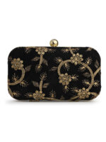 Black & Gold Embroidered Box clutches, Has gold chain shoulder strap, 1 main compartment with twist closure