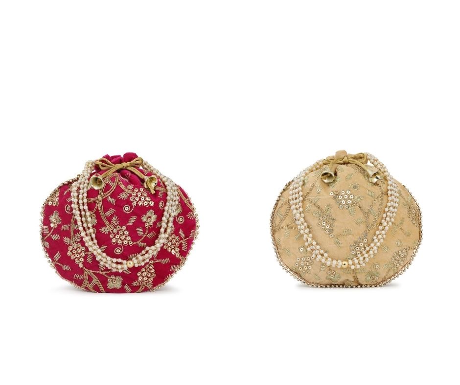 Be the first to review “Designer Embroidered Potli Bag Combo- Pink & Beige” Cancel reply